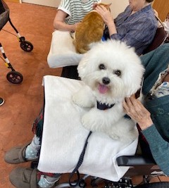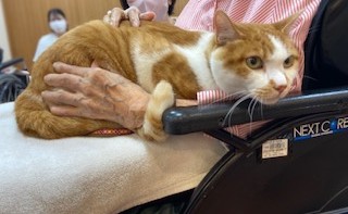 入居者の方の膝の上にちょこんと座って静かに寄り添ったり、手をペロリと舐めたり。
