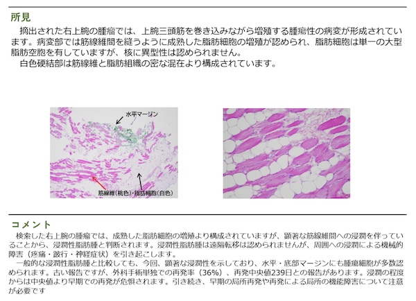 「浸潤性脂肪腫」の診断が出ました。