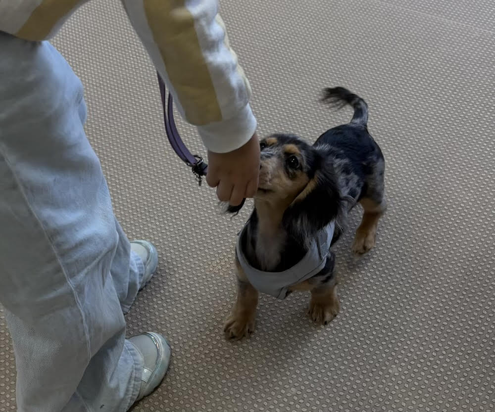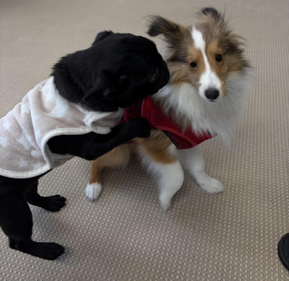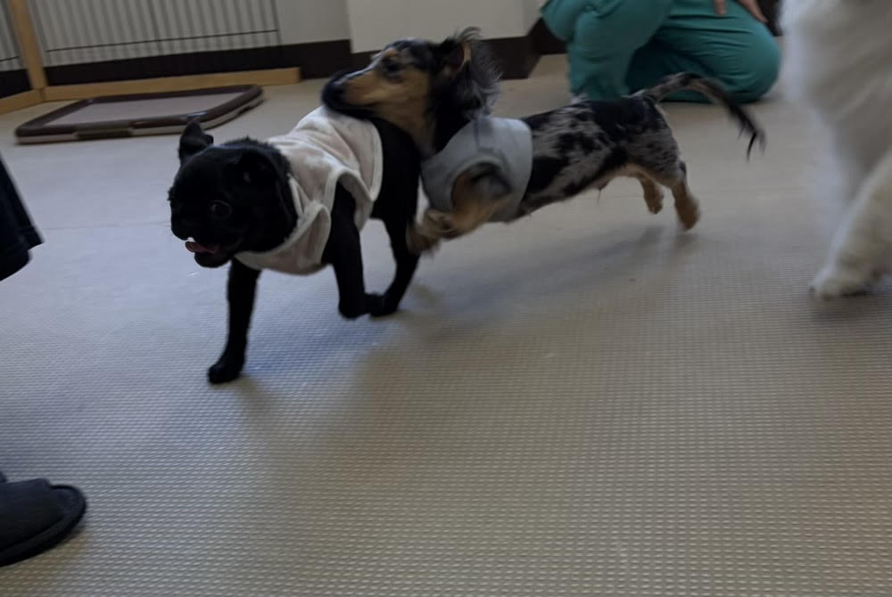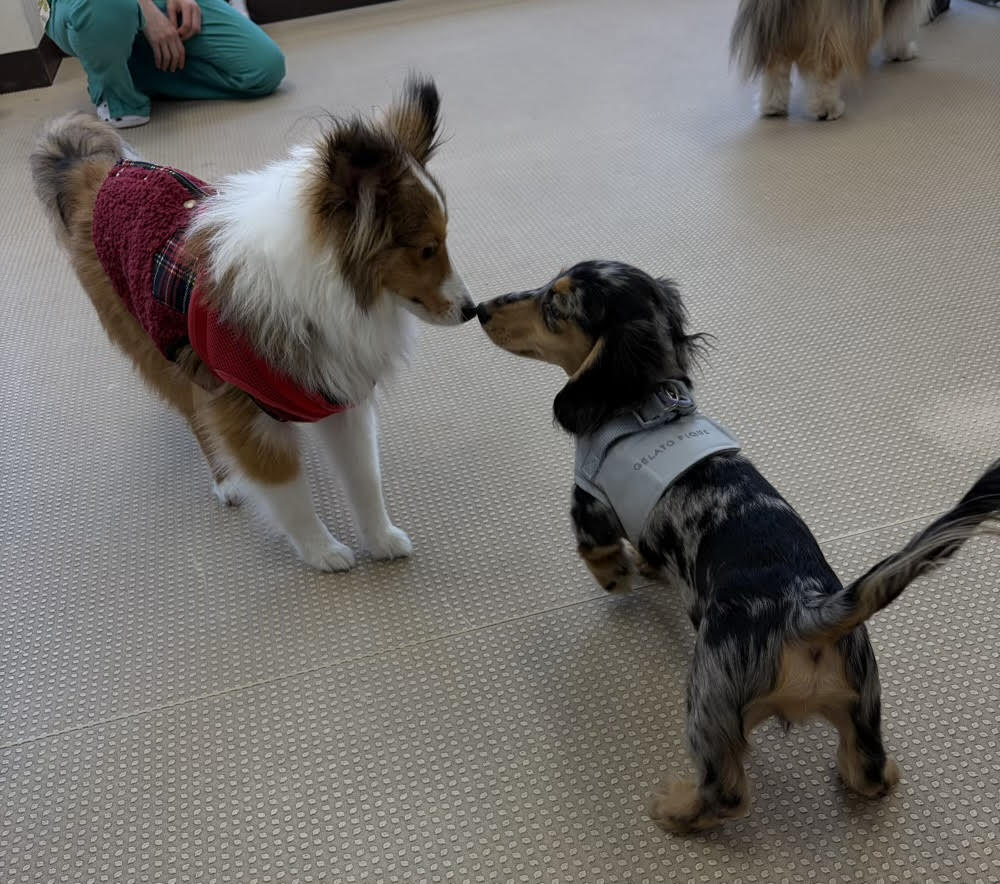 スタッフ犬のニトア登場を喜ぶセナくん